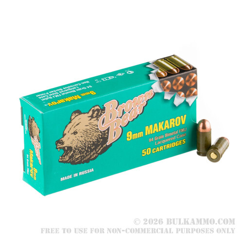 1000 Rounds of 9x18mm Makarov Ammo by Brown Bear - 94gr FMJ