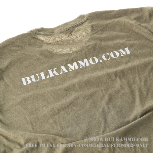 With our homemade Russian spam can design, these shirts are the ultimate compliment to your arsenal of AK's for your next range trip. On the back, there is a small BulkAmmo.com logo between the shoulder blades - which might be enough evidence to let your non-shooting friends in on the joke.